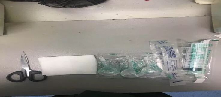 开塞露3枚、吸痰管、剪刀、注射器60毫升、一个纱布块