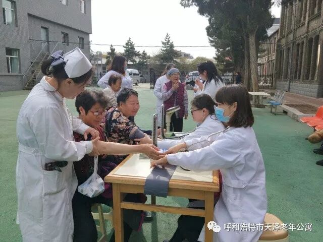 2018年4月16日上午,社区卫生服务中心的医护人员一起来公寓为公寓在住老年人做义诊活动。